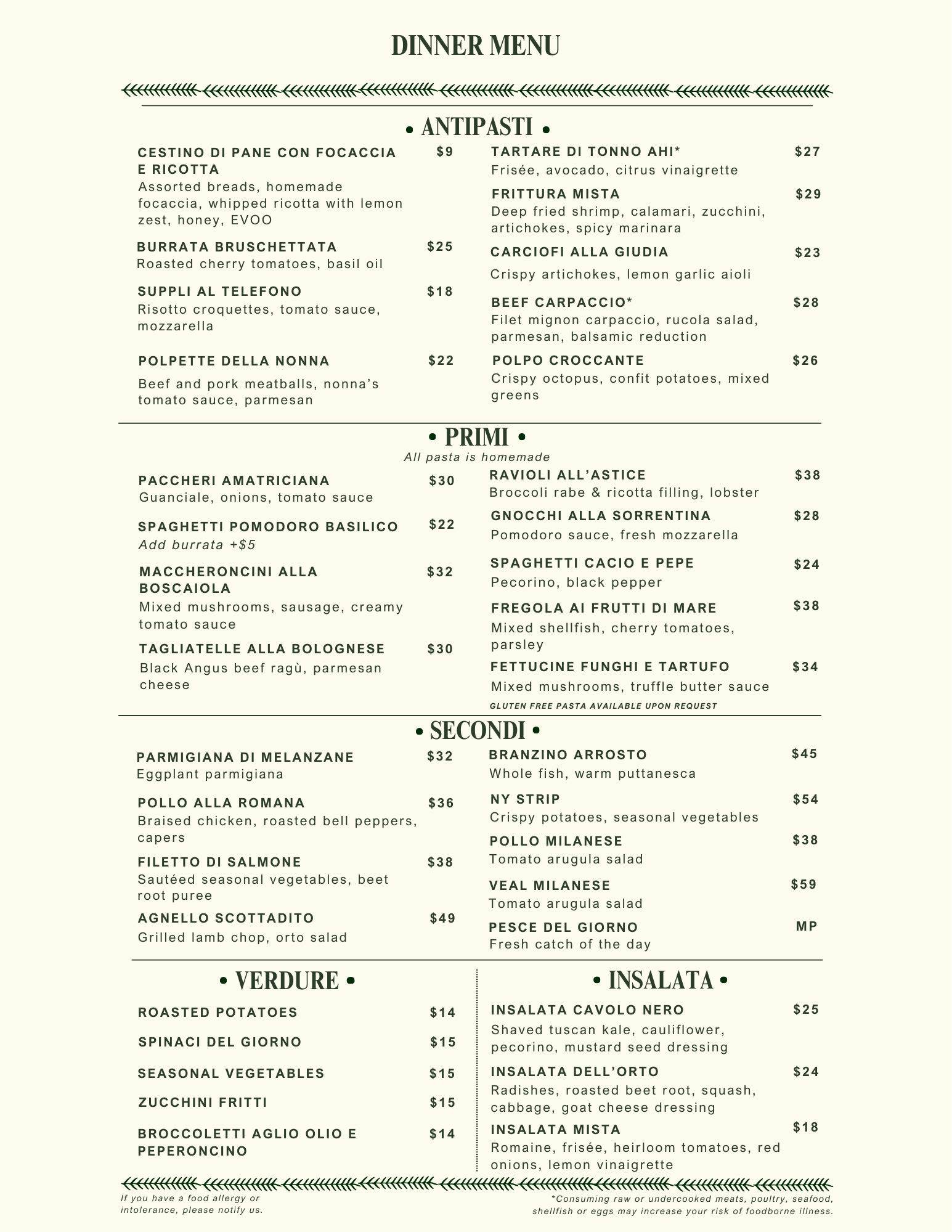 The Spiga team draws on our Italian heritage and extensive culinary experience, bringing a passion for amazing food and warm, genuine hospitality. At Spiga, Italian tradition meets artistry — every dish prepared with the finest ingredients, every moment infused with la dolce vita.