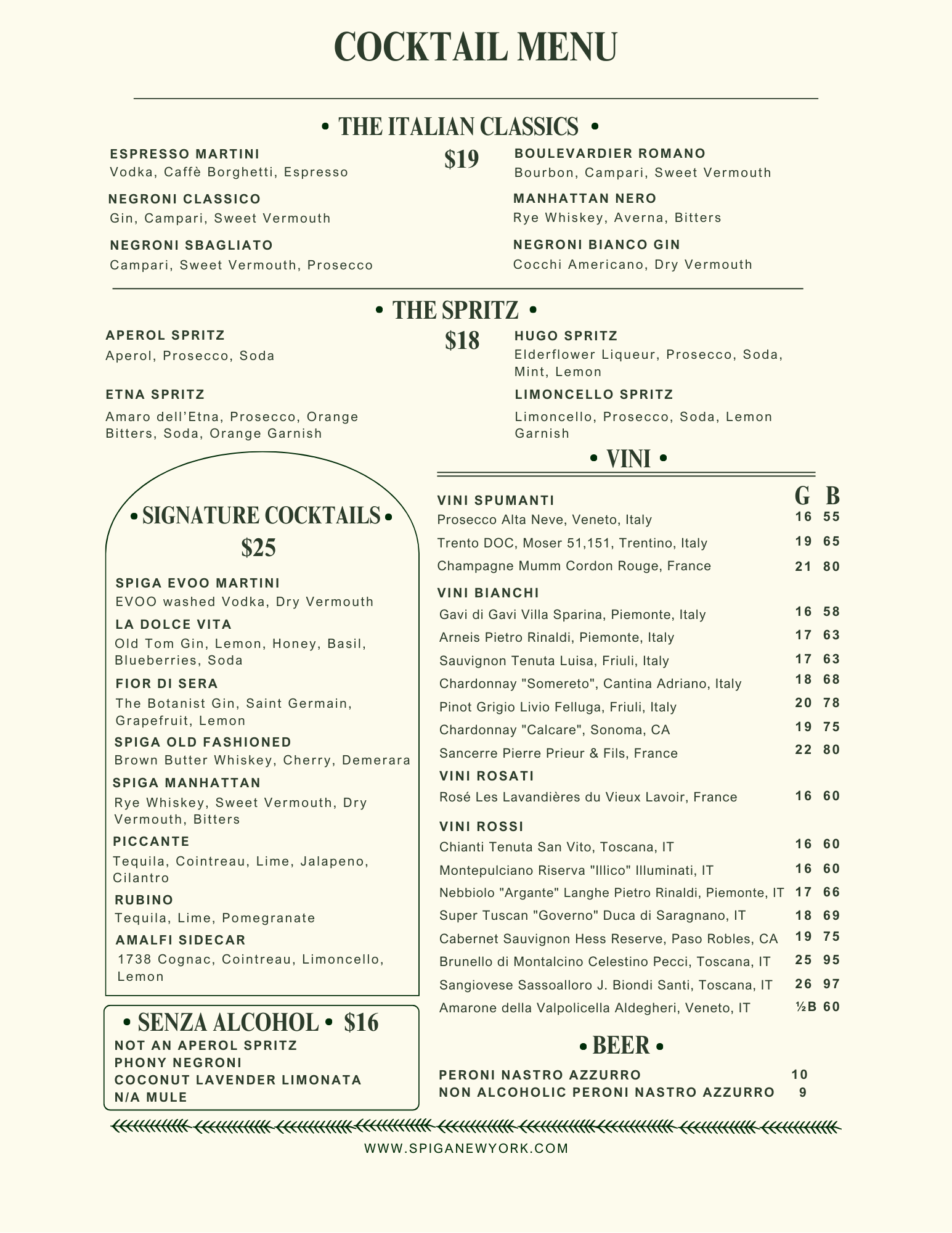 The original Spiga on West 84th Street has become a beloved neighborhood gem — a quaint, rustic Roman-style trattoria, where the aromas of slow-simmered sauces, the clinking of wine glasses, and the joyful hum of conversation create an atmosphere that feels like a timeless evening in Trastevere.