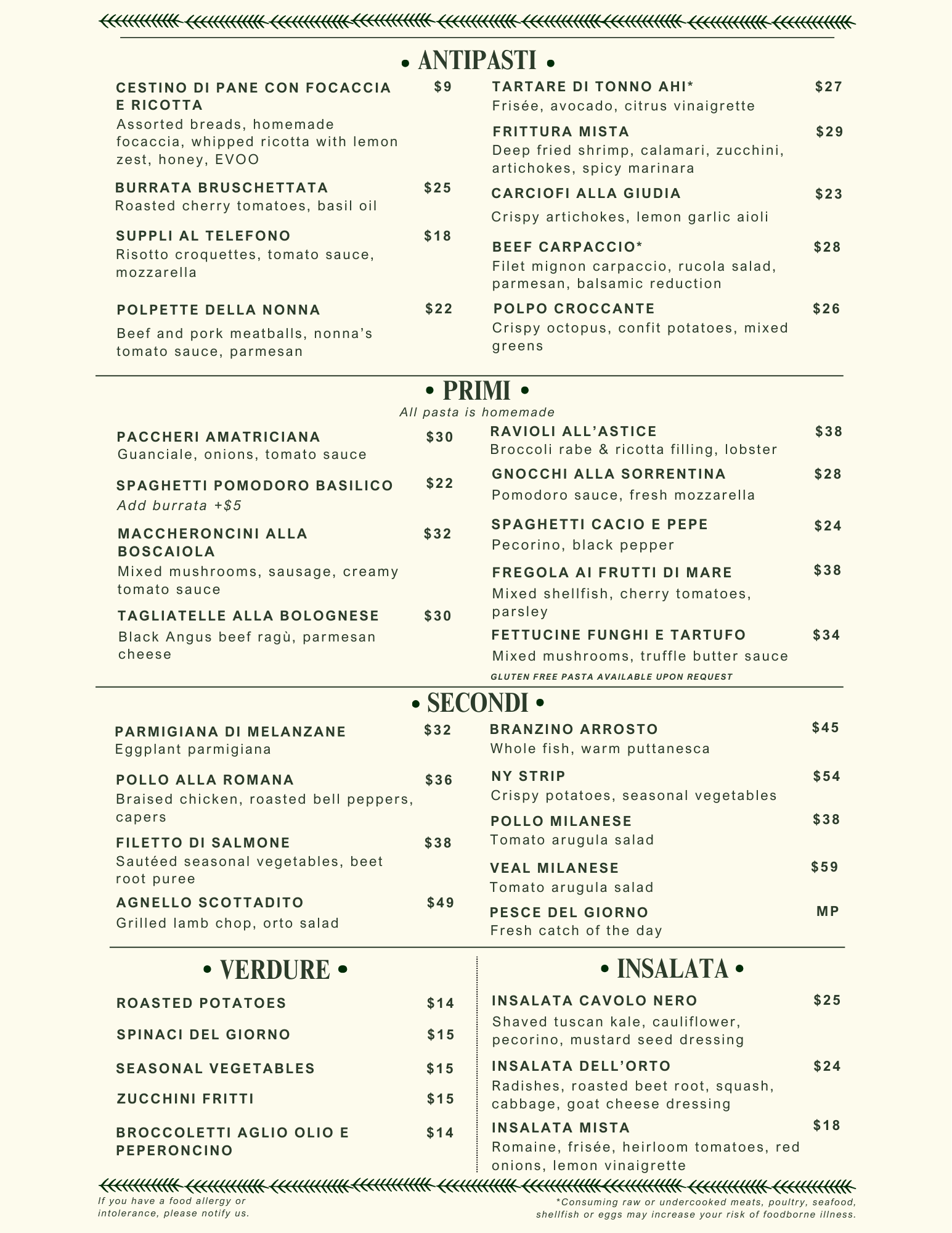 Dinner Menu